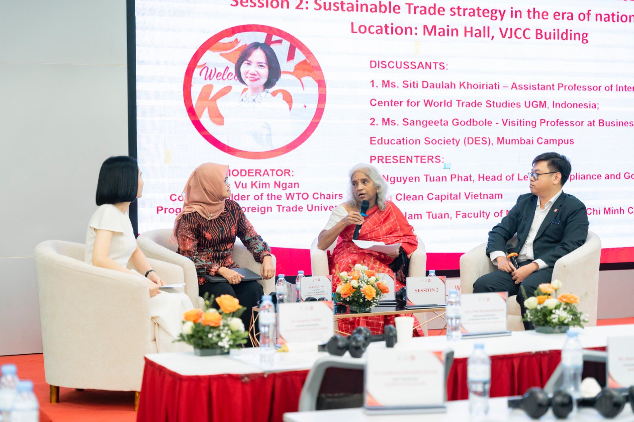 - Session 2, titled “Sustainable Trade Strategies in the Rising Era,” was led by Dr. Vu Kim Ngan – Co-Chairholder of the WTO Chair Programme at FTU.